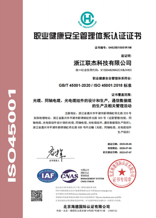 职业健康安全管理体系证书